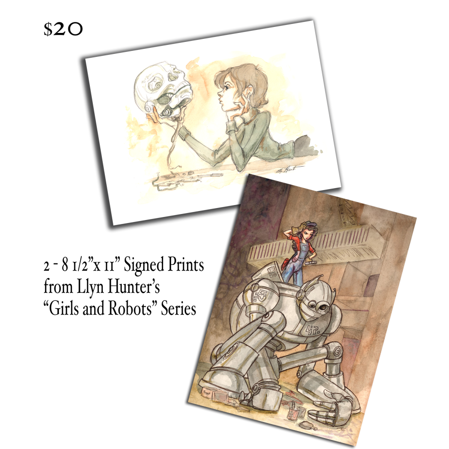 Two of the best loved images from my ongoing series, "Girls and Robots." When you put two things that are very different in an illustration, something magically happens. That's why when I'm making up images I like throwing these two together. What stories do these two summon in your mind. I think "Girls and Robots," are just fun to play with. I hope that you might want to add them to your collection. Each print is signed and limited to a run of 100 pieces.